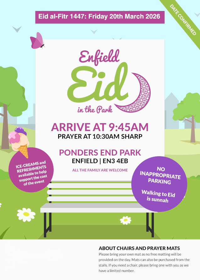 TIME: Arrival and speech 9:45 am. Prayer at 10:30 am sharp. Please ensure you are on time to avoid missing the prayer. Please also ensure that you bring your own prayer mat as we are unable to provide matting or chairs on the day.